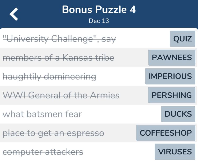 7 Little Words is a word puzzle game in which players are presented with a series of clues and must use the clues to determine the correct words. 7 Little Words is available on a variety of platforms, including mobile devices and web browsers. It is free to play, but some in-game features may be available for purchase. We are sharing 7 Little Words puzzle game daily answers for December 13 2023. Also in this page you can find 7 Little Words Bonus Puzzles all Answers. Enjoy!