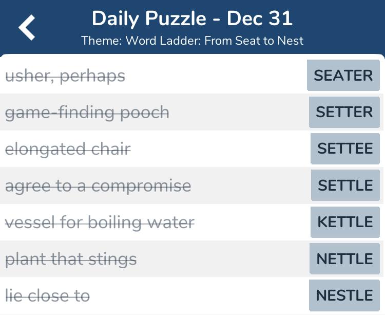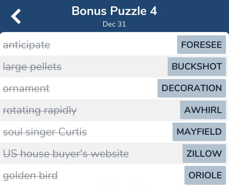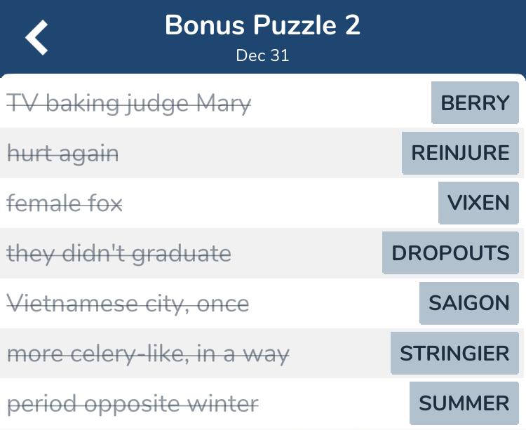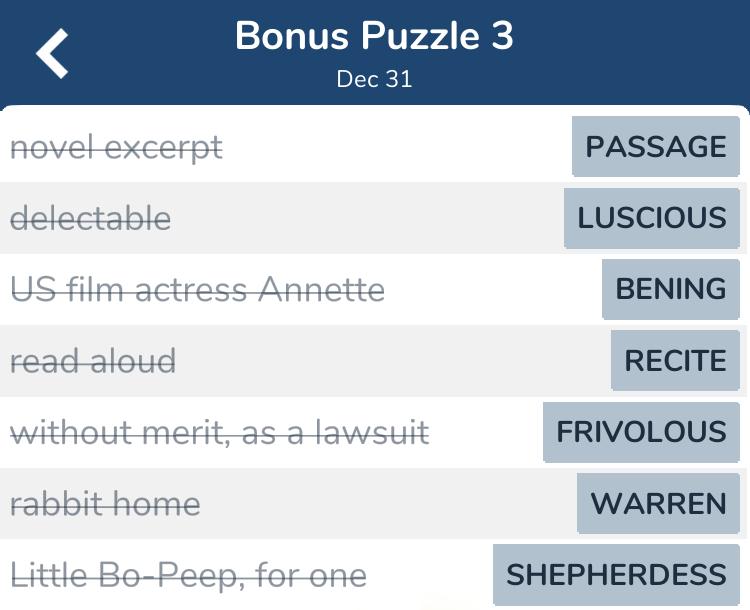 7 Little Words is a word puzzle game in which players are presented with a series of clues and must use the clues to determine the correct words. 7 Little Words is available on a variety of platforms, including mobile devices and web browsers. It is free to play, but some in-game features may be available for purchase. We are sharing 7 Little Words puzzle game daily answers for December 31 2023. Also in this page you can find 7 Little Words Bonus Puzzles all Answers. Enjoy!