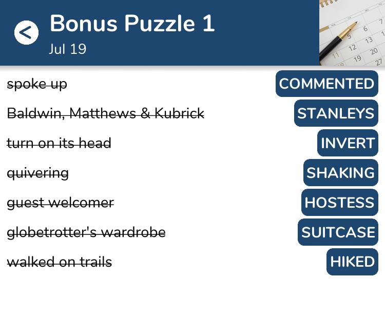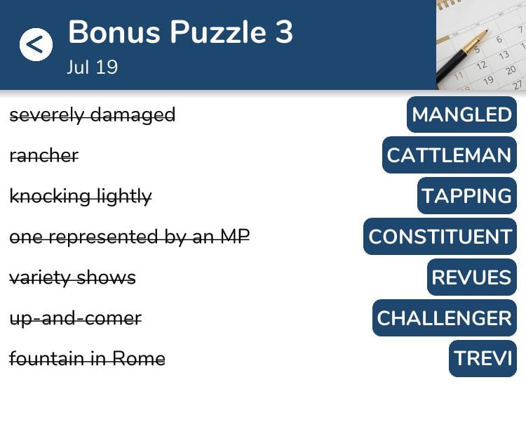7 Little Words is a word puzzle game in which players are presented with a series of clues and must use the clues to determine the correct words. 7 Little Words is available on a variety of platforms, including mobile devices and web browsers. It is free to play, but some in-game features may be available for purchase. We are sharing 7 Little Words puzzle game daily answers for July 19 2023. Also in this page you can find 7 Little Words Bonus Puzzles all Answers. Enjoy!