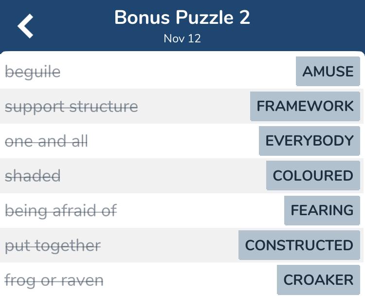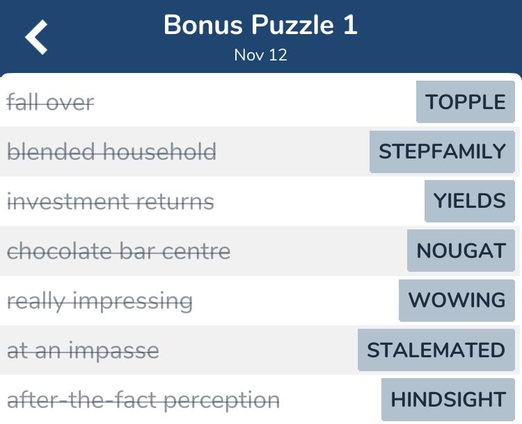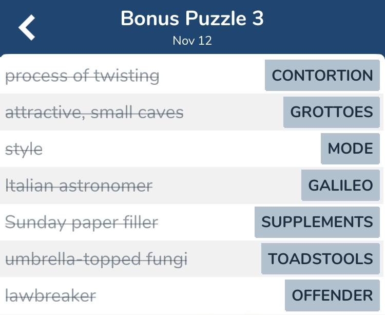 7 Little Words is a word puzzle game in which players are presented with a series of clues and must use the clues to determine the correct words. 7 Little Words is available on a variety of platforms, including mobile devices and web browsers. It is free to play, but some in-game features may be available for purchase. We are sharing 7 Little Words puzzle game daily answers for November 12 2023. Also in this page you can find 7 Little Words Bonus Puzzles all Answers. Enjoy!