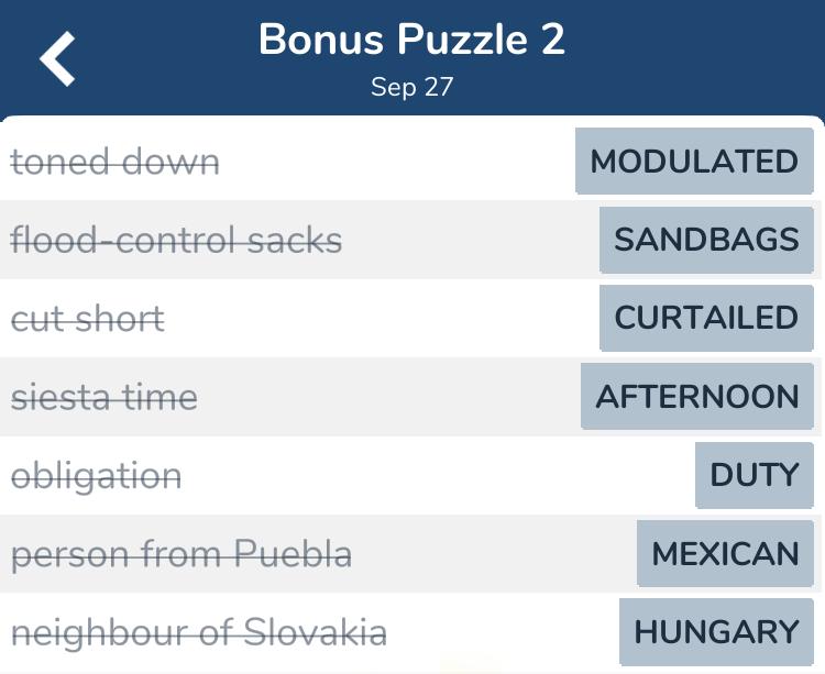 7 Little Words is a word puzzle game in which players are presented with a series of clues and must use the clues to determine the correct words. 7 Little Words is available on a variety of platforms, including mobile devices and web browsers. It is free to play, but some in-game features may be available for purchase. We are sharing 7 Little Words puzzle game daily answers for September 27 2023. Also in this page you can find 7 Little Words Bonus Puzzles all Answers. Enjoy!