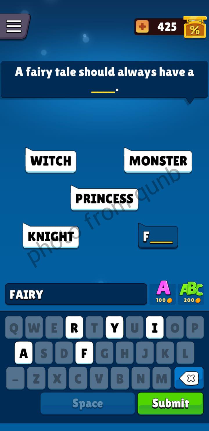 Popular Words Game is created by Unico Studio. Game including hundreds of unique questions, free Daily challenges and bonus rewards. You can play this game offline anytime and anywhere.For pass the level you have to guess 5 words that are missing in the sentence. For this, like hint is provided first letter of the every word. The levels of the game start with the easiest and continue with more difficult puzzles. If you need help for some levels – you can find it in our website. Here you can find photo with all answers for “A fairy tale should always have a __” which is a question from Level 26 Popular Words Game. Below answers follow link to all answers of the game. Enjoy your game!