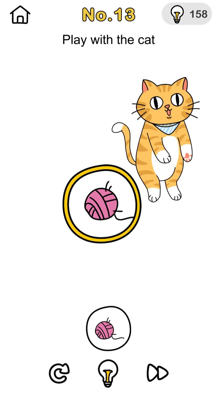 Qunb providing answers for Brain Out Crazy Find Pack No 13 (Level 13) for “Play with the cat” . So you can check below: