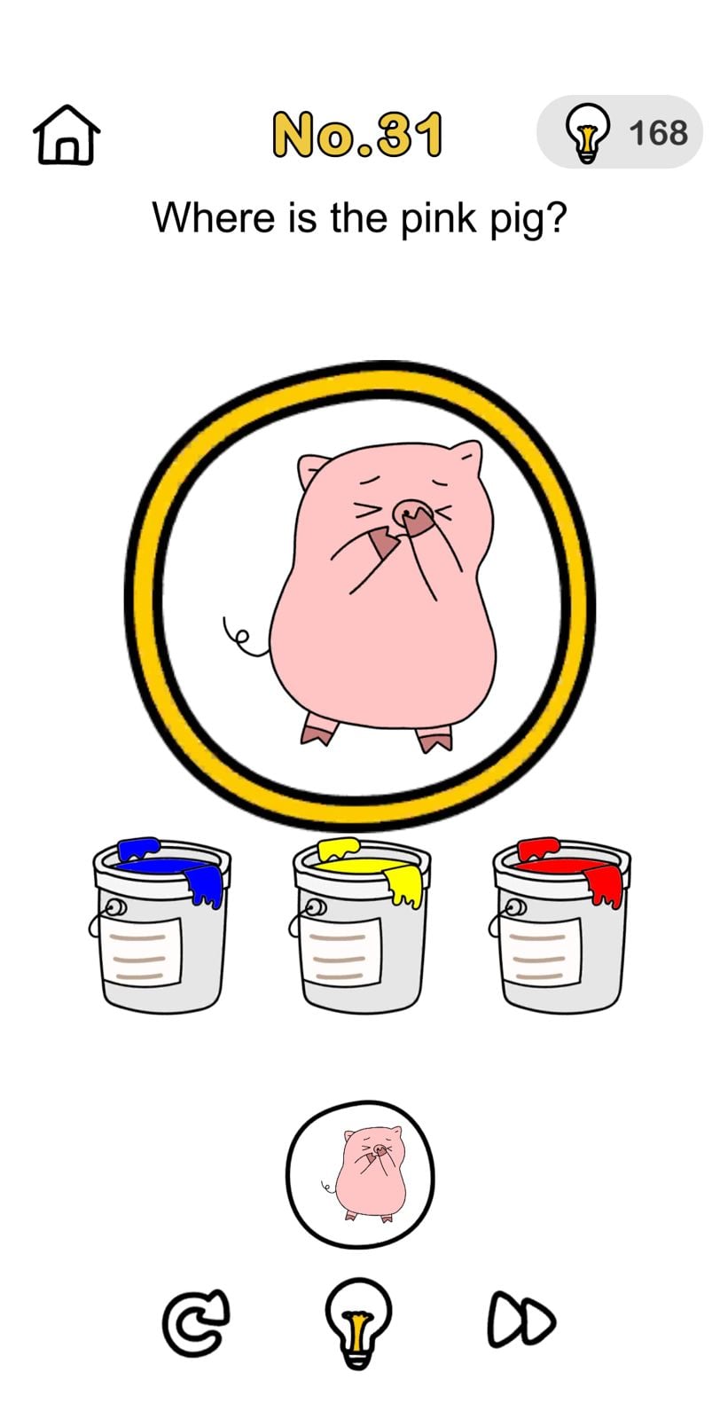 Qunb providing answers for Brain Out Crazy Find Pack No 31 (Level 31) for “Where is the pink pig” . So you can check below: