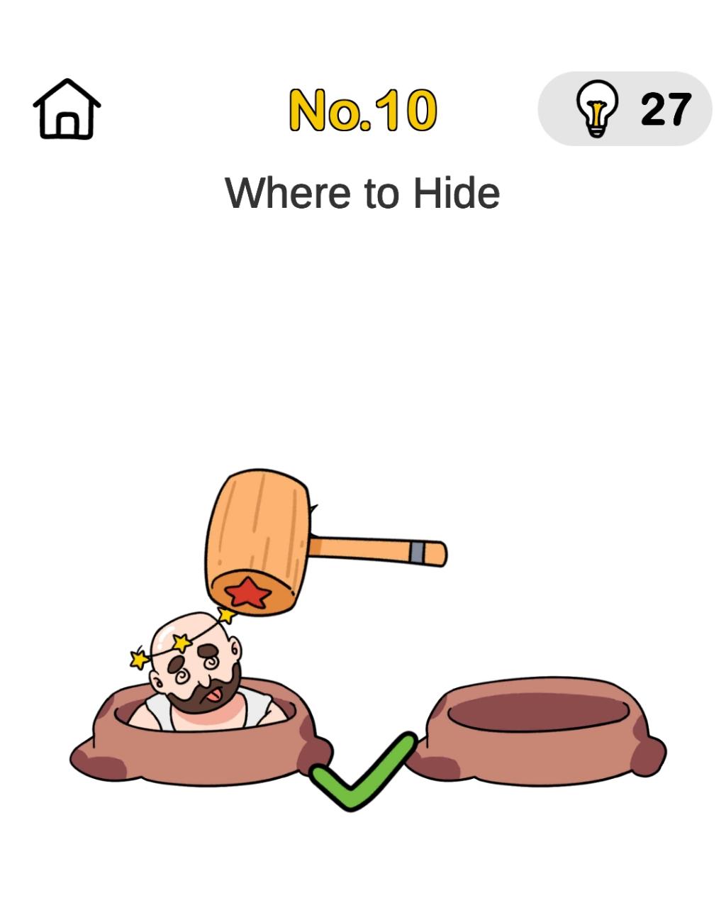 Qunb providing answers for Brain Out Prank Plan Pack No 10 (Level 10) for “Where to hide” . So you can check below: