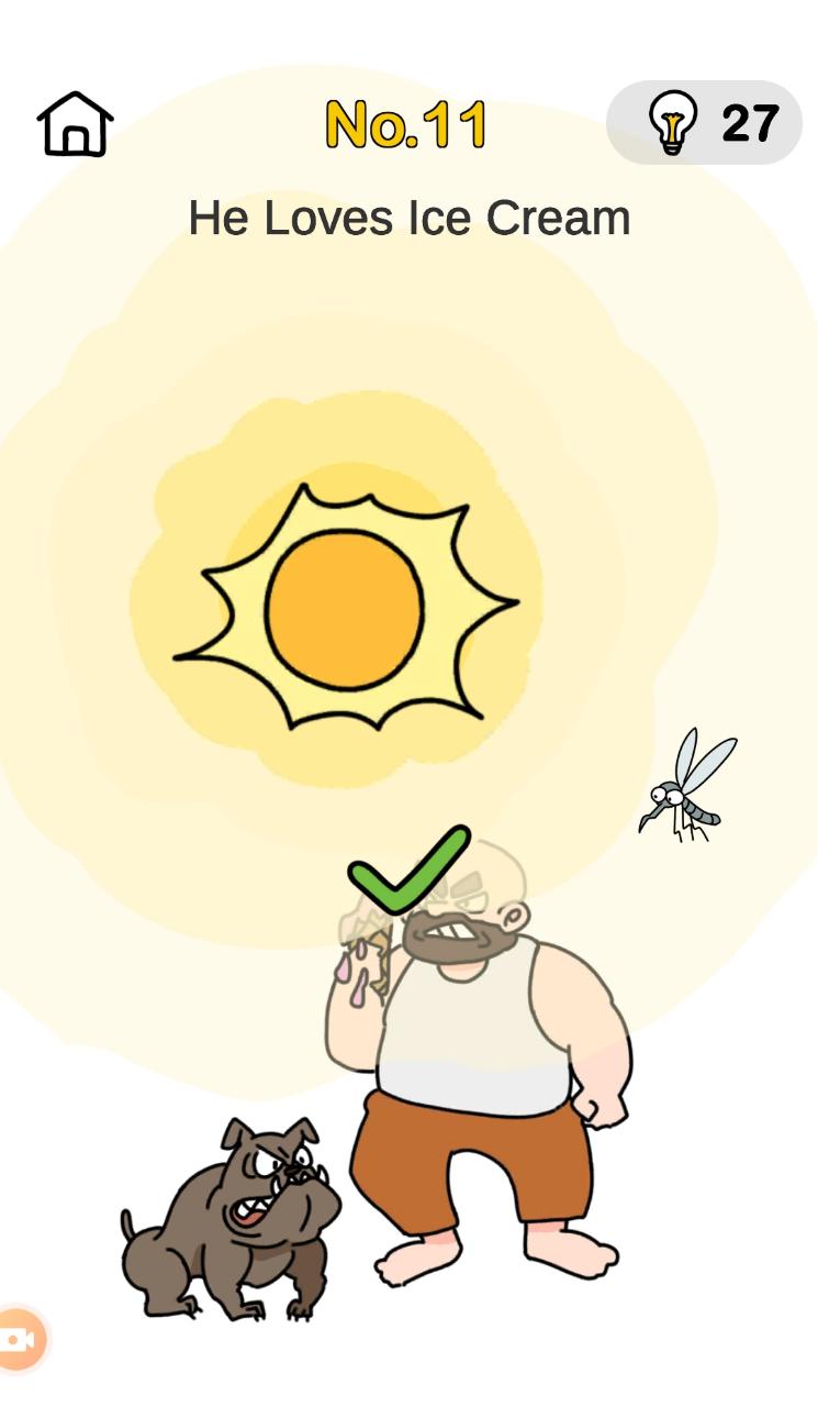 Qunb providing answers for Brain Out Prank Plan Pack No 11 (Level 11) for “He loves ice cream” . So you can check below: