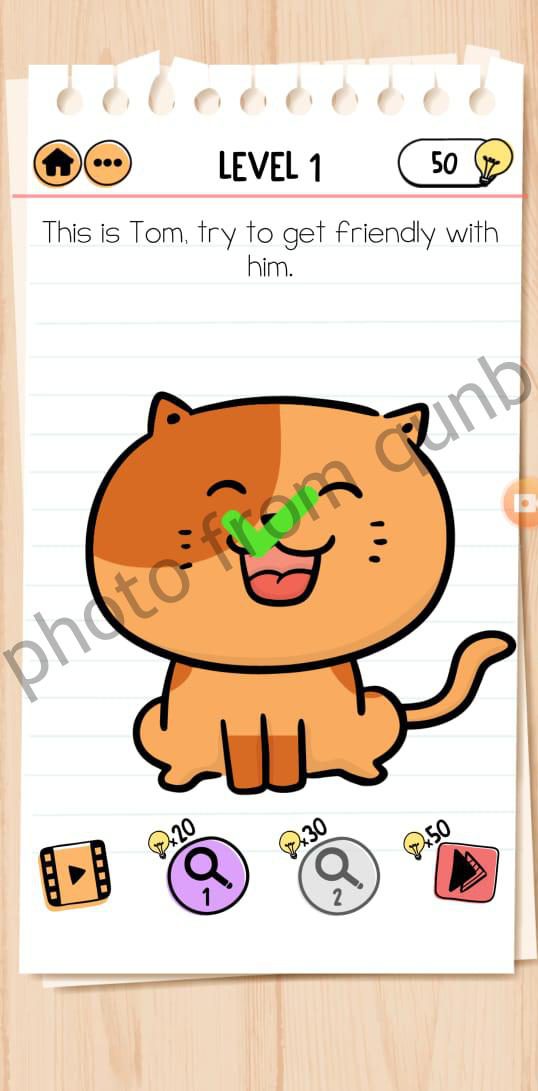 Brain Test 2: Tricky Stories is a brain teaser mobile game app – second part of most popular game in the word Brain Test: Tricky Puzzles. Brain Test 2 has different packs and we are sharing solutions. Here you can see photo and below photo short explanation how we solved Level 1 This is Tom, try to get friendly with him Tom’s Adventure Brain Test 2: Tricky Stories. If you have more questions please comment this page and we will try help you.
