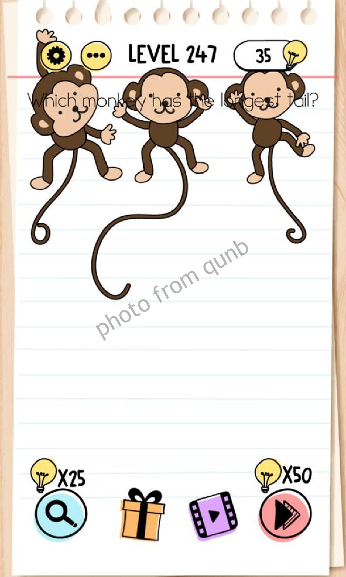 Brain Test is a brain teaser mobile game app. Brain Test has hundreds levels and we are sharing solutions. Brain Test already downloaded by lot of people that millions. This is a hard game in some levels and you can stuck on some level as Level 247.