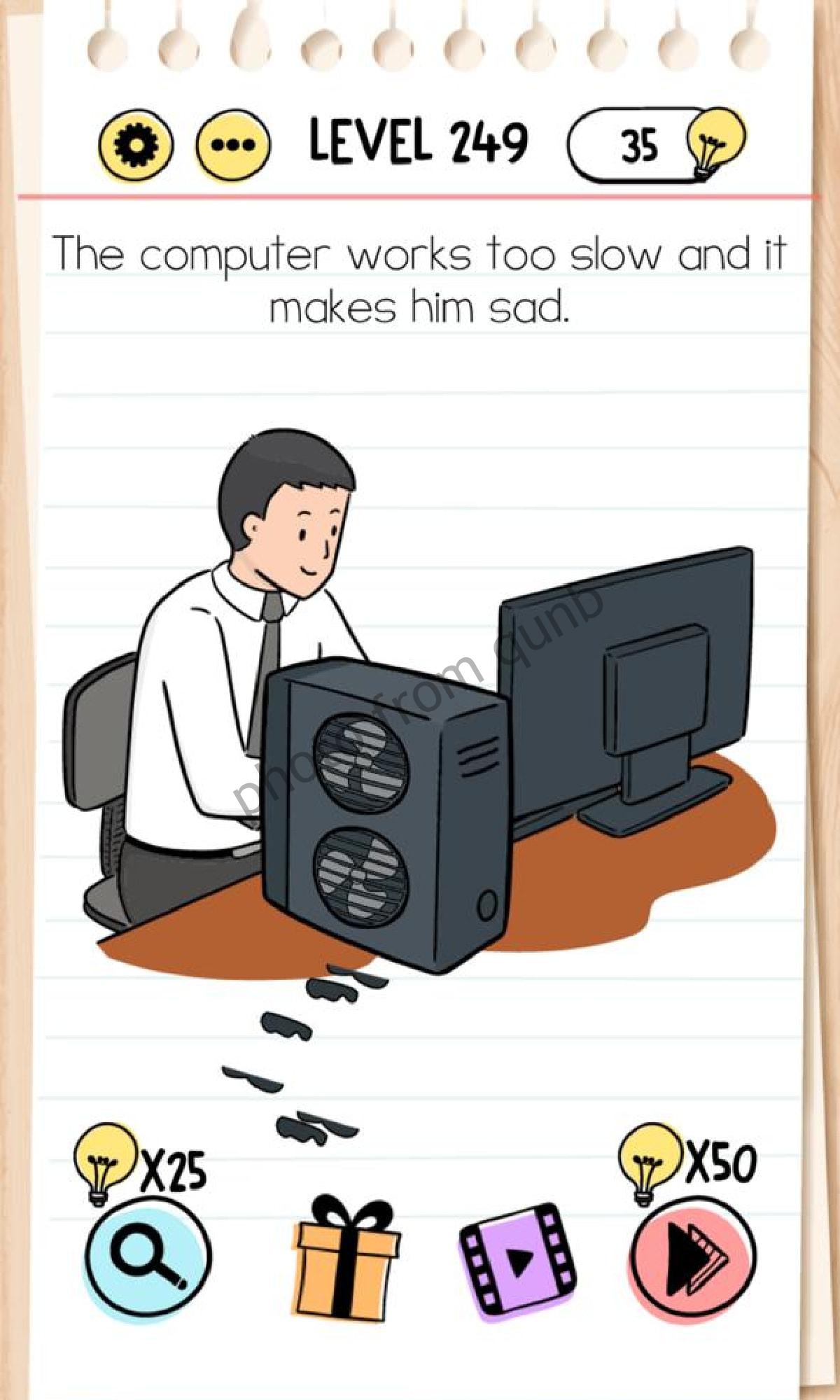 Brain Test is a brain teaser mobile game app. Brain Test has hundreds levels and we are sharing solutions. Brain Test already downloaded by lot of people that millions. This is a hard game in some levels and you can stuck on some level as Level 249.