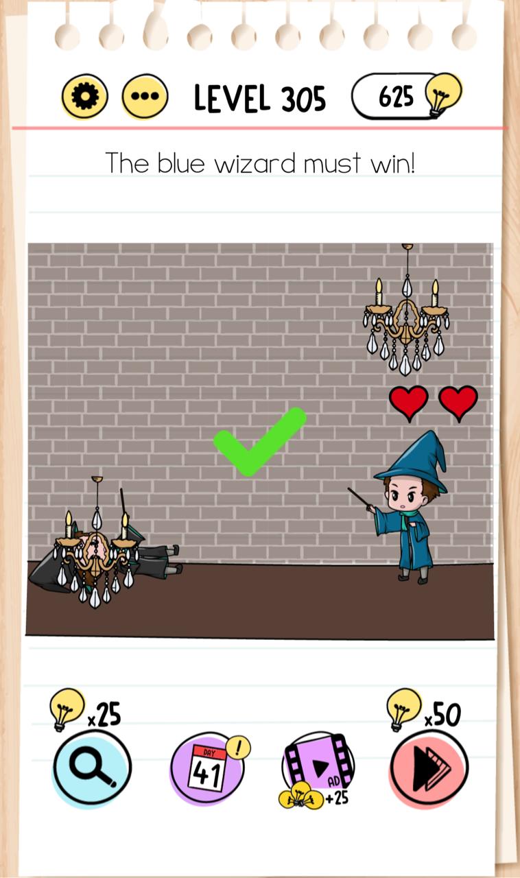 Brain Test is a brain teaser mobile game app. Brain Test has hundreds levels and we are sharing solutions. Brain Test already downloaded by lot of people that millions. This is a hard game in some levels and you can stuck on some level as Level 305 “The blue wizard must win”.