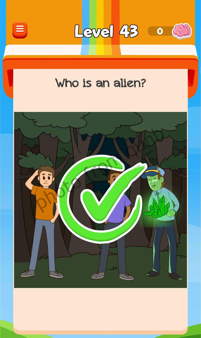 Braindom 3: Smart, Brain Games is a third part of Braindom game from MATCHINGHAM GAMES LIMITED with different kind of new puzzles and riddles. Here you can see photo and below photo explanation how we solved Level 43 “Who is an alien” Braindom 3 Game. If you have more questions please comment this page and we will try help you. If you need more levels answers please click link below solutions of this level.
