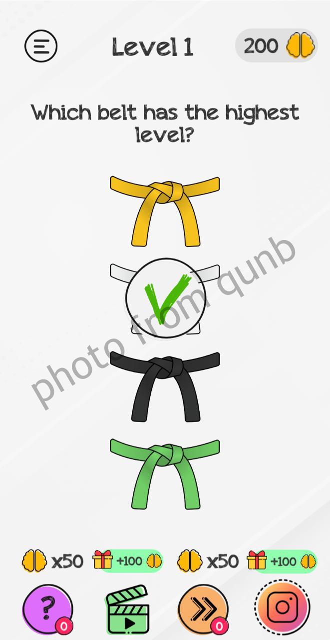 Braindom: Tricky Brain Puzzles is a brain teaser mobile game app with different kind of puzzles and riddles. Here you can see photo and below photo short explanation how we solved Level 1 Which belt has the highest level Braindom: Tricky Brain Puzzles. If you have more questions please comment this page and we will try help you. If you need more levels answers please click link below solutions of this level.