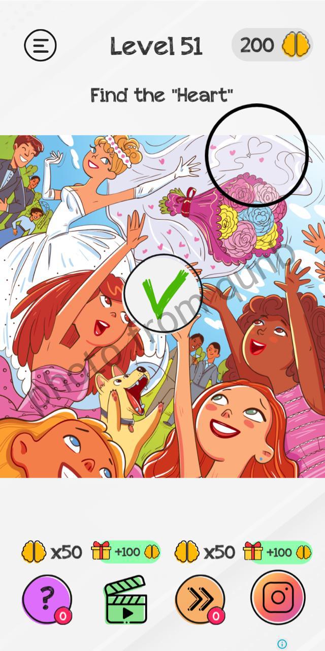 Braindom: Tricky Brain Puzzles is a brain teaser mobile game app with different kind of puzzles and riddles. Here you can see photo and below photo short explanation how we solved Level 51 Find the “Heart” Braindom: Tricky Brain Puzzles. If you have more questions please comment this page and we will try help you. If you need more levels answers please click link below solutions of this level.