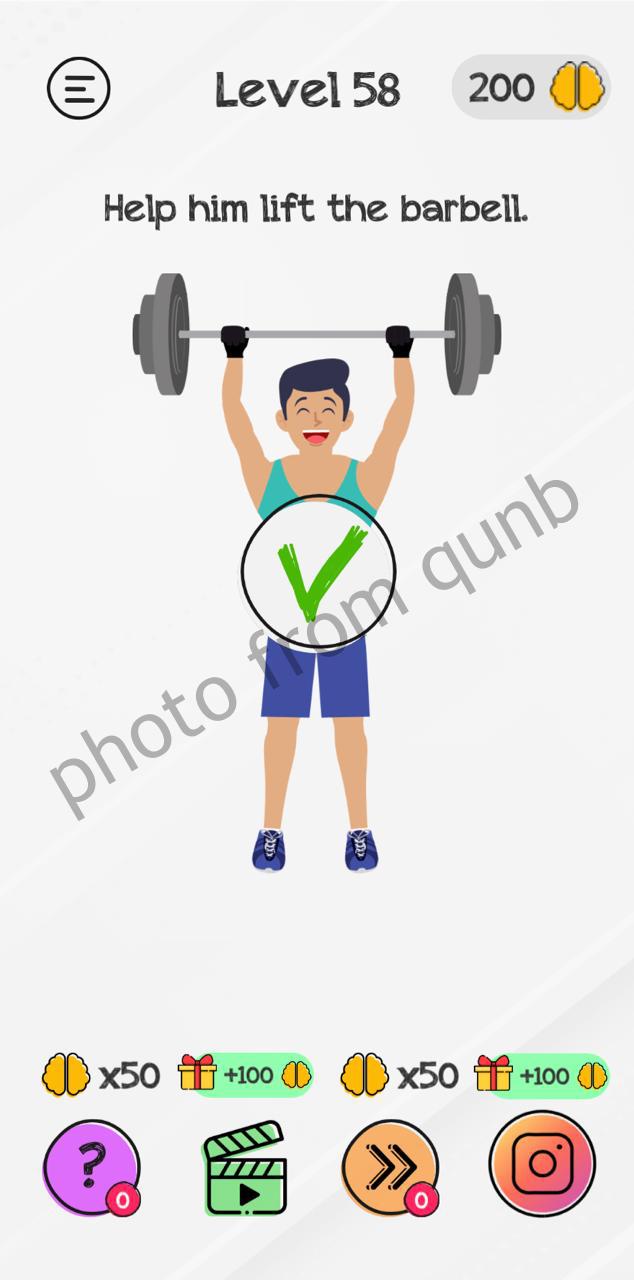 Braindom: Tricky Brain Puzzles is a brain teaser mobile game app with different kind of puzzles and riddles. Here you can see photo and below photo short explanation how we solved Level 58 Help him lift the barbell Braindom: Tricky Brain Puzzles. If you have more questions please comment this page and we will try help you. If you need more levels answers please click link below solutions of this level.