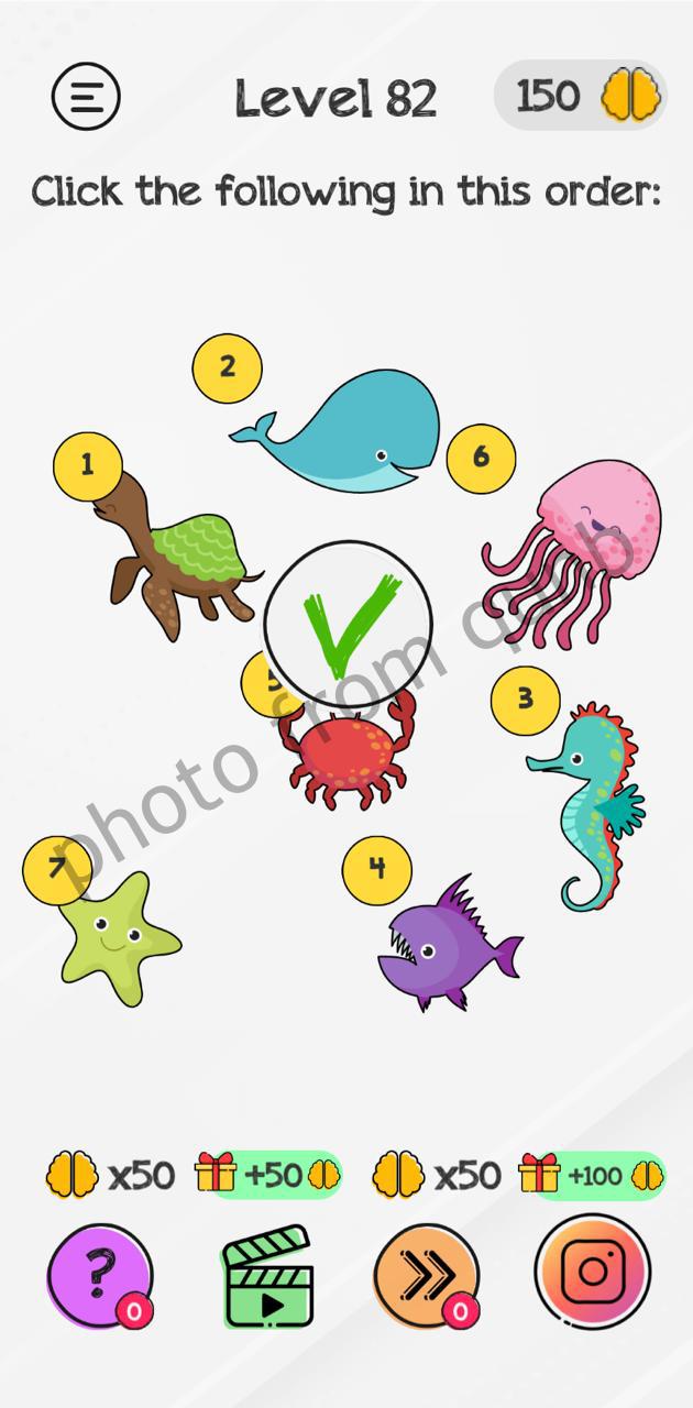 Braindom: Tricky Brain Puzzles is a brain teaser mobile game app with different kind of puzzles and riddles. Here you can see photo and below photo short explanation how we solved Level 82 Click the following in this order Braindom: Tricky Brain Puzzles. If you have more questions please comment this page and we will try help you. If you need more levels answers please click link below solutions of this level.