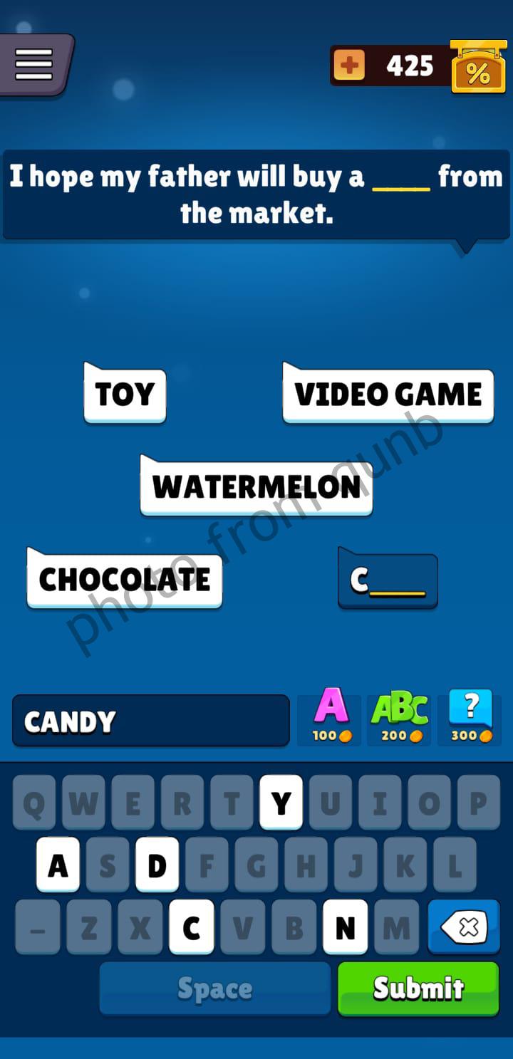 Popular Words Game is created by Unico Studio. Game including hundreds of unique questions, free Daily challenges and bonus rewards. You can play this game offline anytime and anywhere.For pass the level you have to guess 5 words that are missing in the sentence. For this, like hint is provided first letter of the every word. The levels of the game start with the easiest and continue with more difficult puzzles. If you need help for some levels – you can find it in our website. Here you can find photo with all answers for “I hope my father will buy a __ from the market” which is a question from Level 48 Popular Words Game. Below answers follow link to all answers of the game. Enjoy your game!