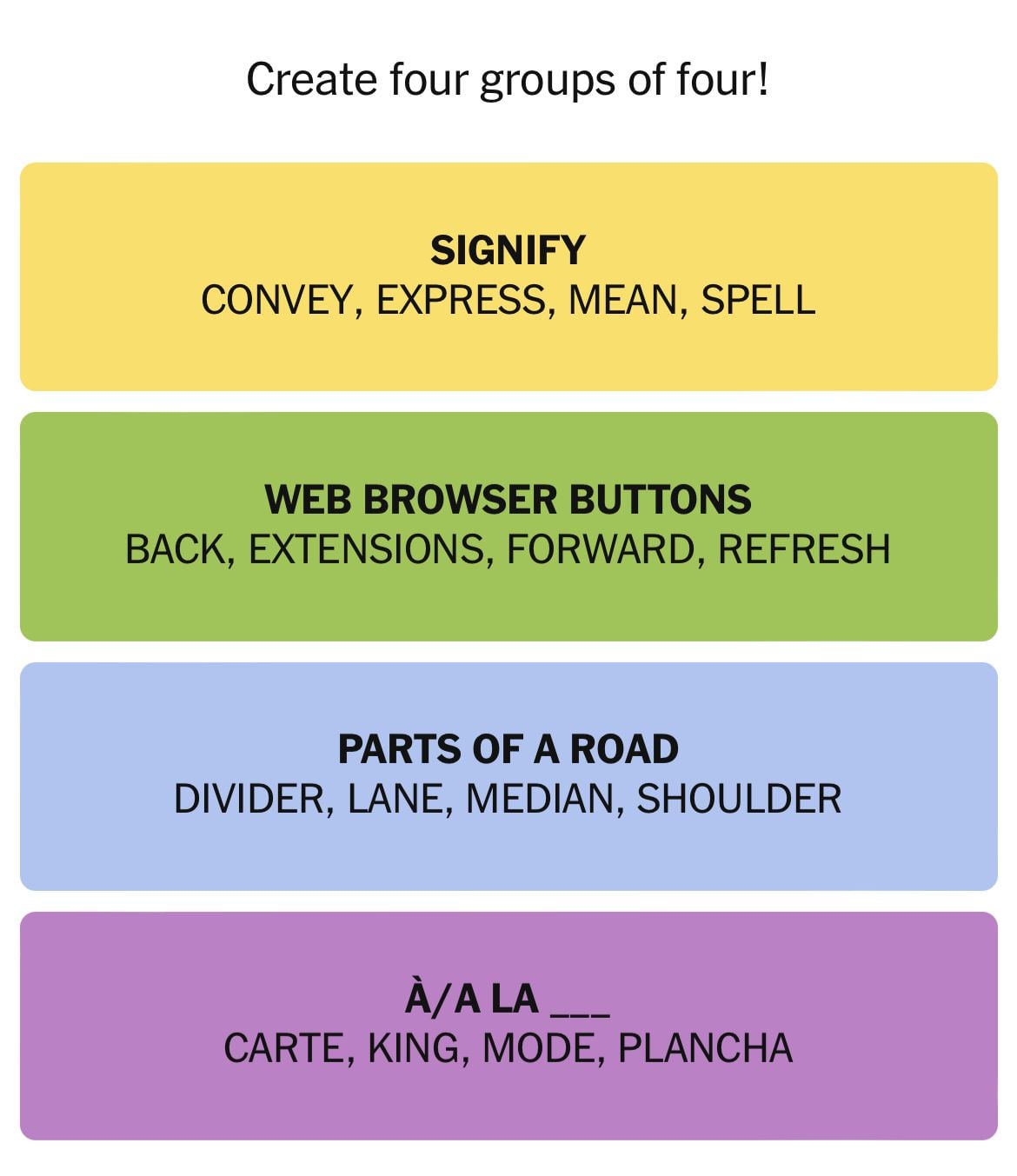 - Identify Connections: Examine the grid of words and identify which words are related.