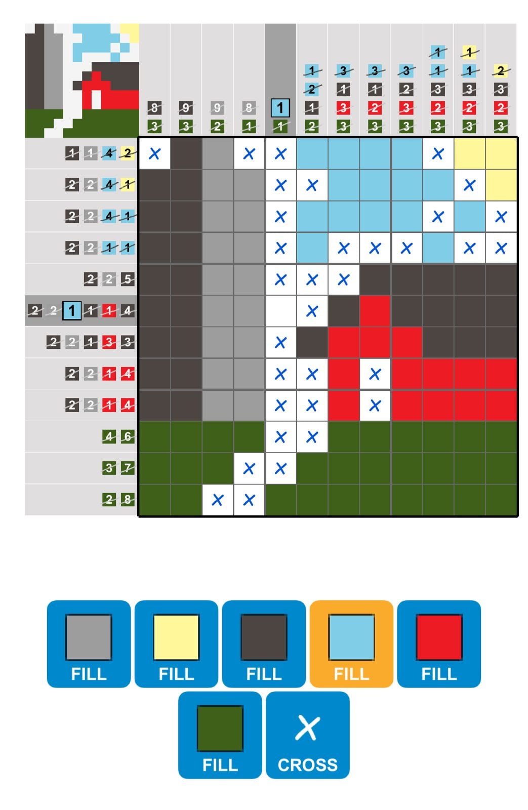 Picture Cross Game is a part of Puzzle Page Game. This is a logic puzzles where you should use numbers provided for every row where you should colour and at the end create a picture. Every row including numbers (blue or coloured) with exact square which you should paint in that row. Sometimes it is not so easy to make and for this you can need our help. If you need solution for Puzzle Page Picture Cross February 1 2024 we are sharing below in photo with all correct solution for this picture cross game. Enjoy!
