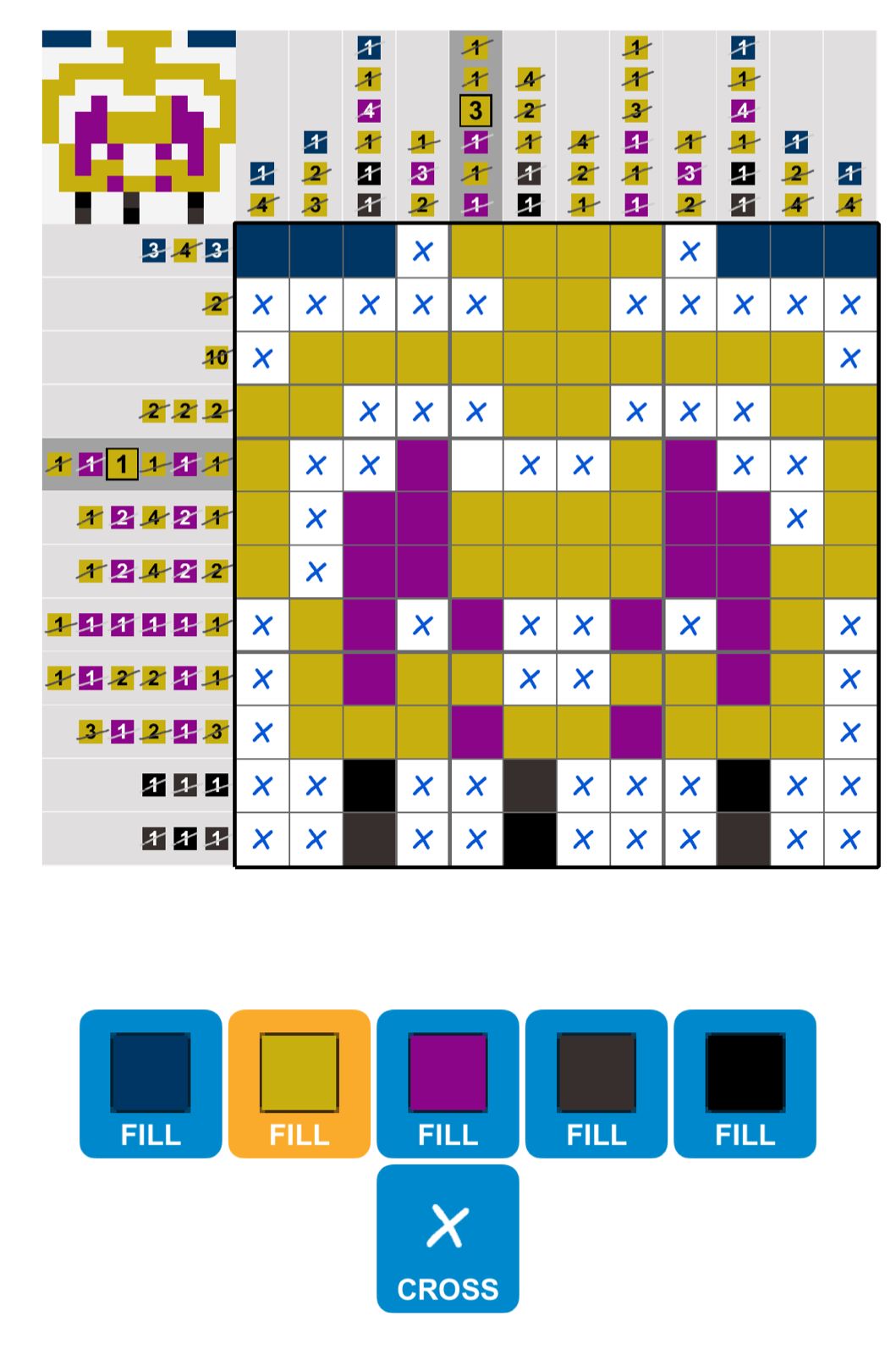 Puzzle Page Picture Cross, also known as Nonogram or Hanjie, is a game that involves filling in a grid with colored squares to reveal a hidden picture. To play, follow these steps: