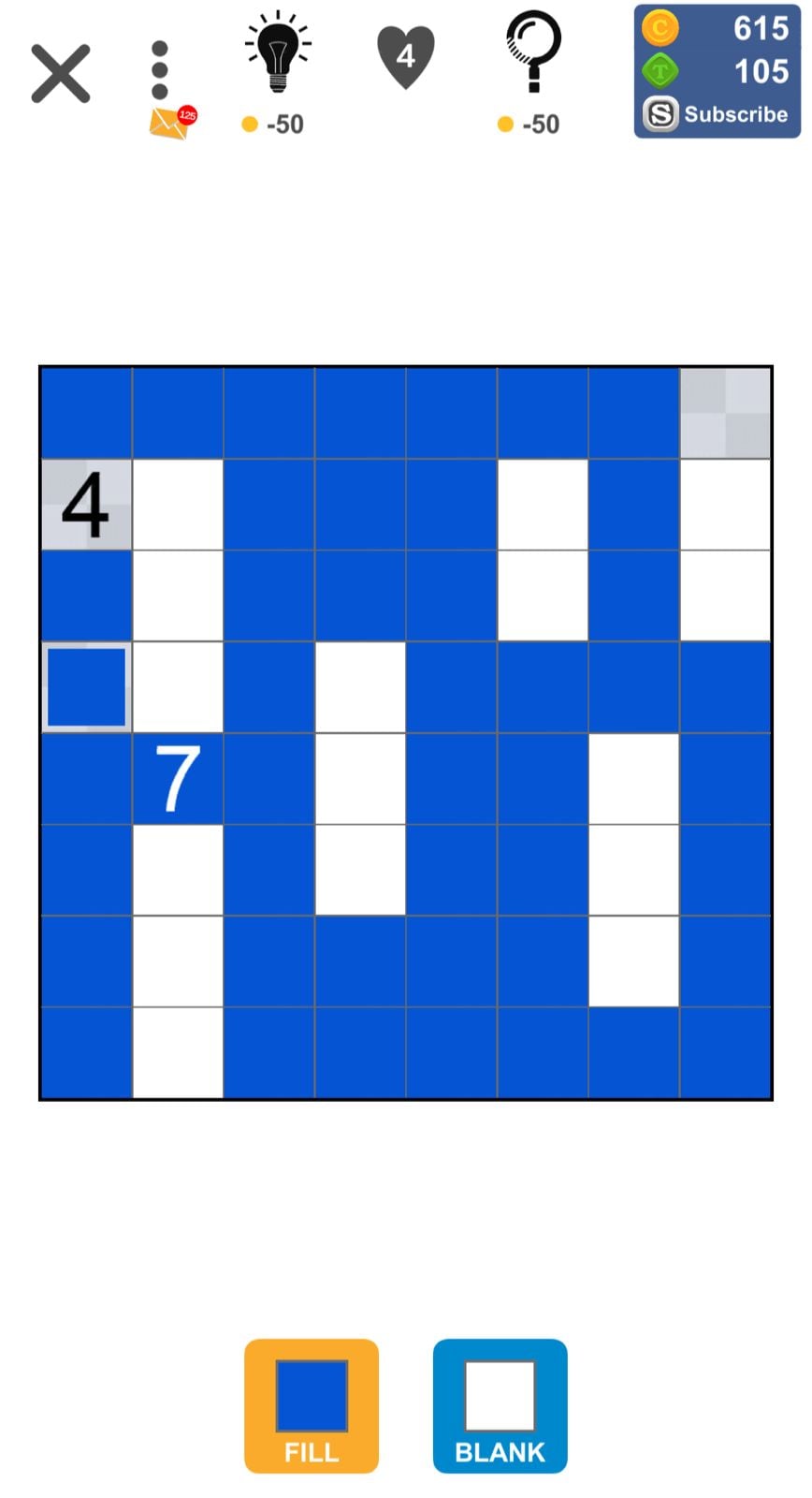 - Start by focusing on the squares that have numbers on them.
