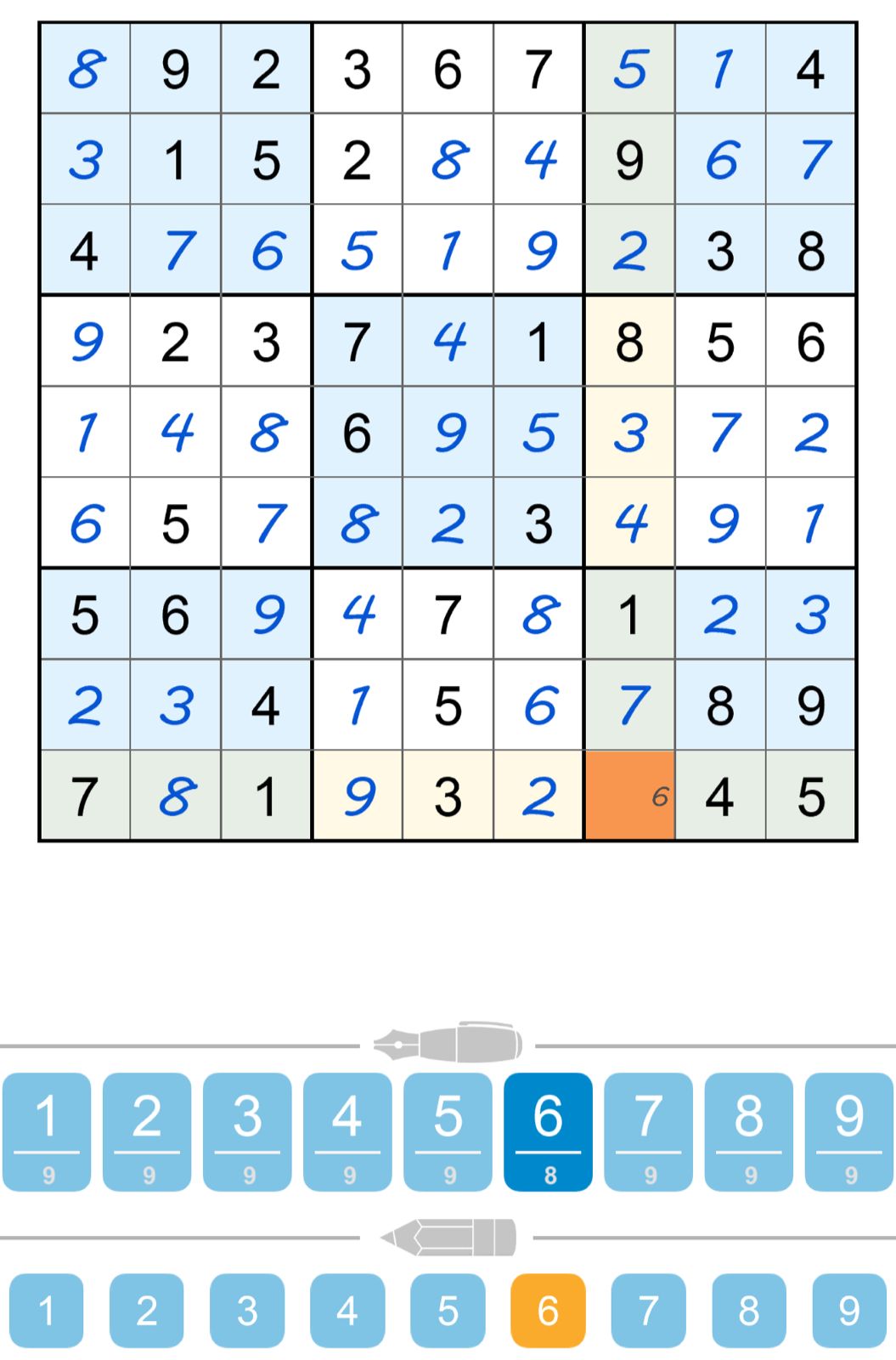 - Start by focusing on the rows, columns, and subgrids that have the most clues.