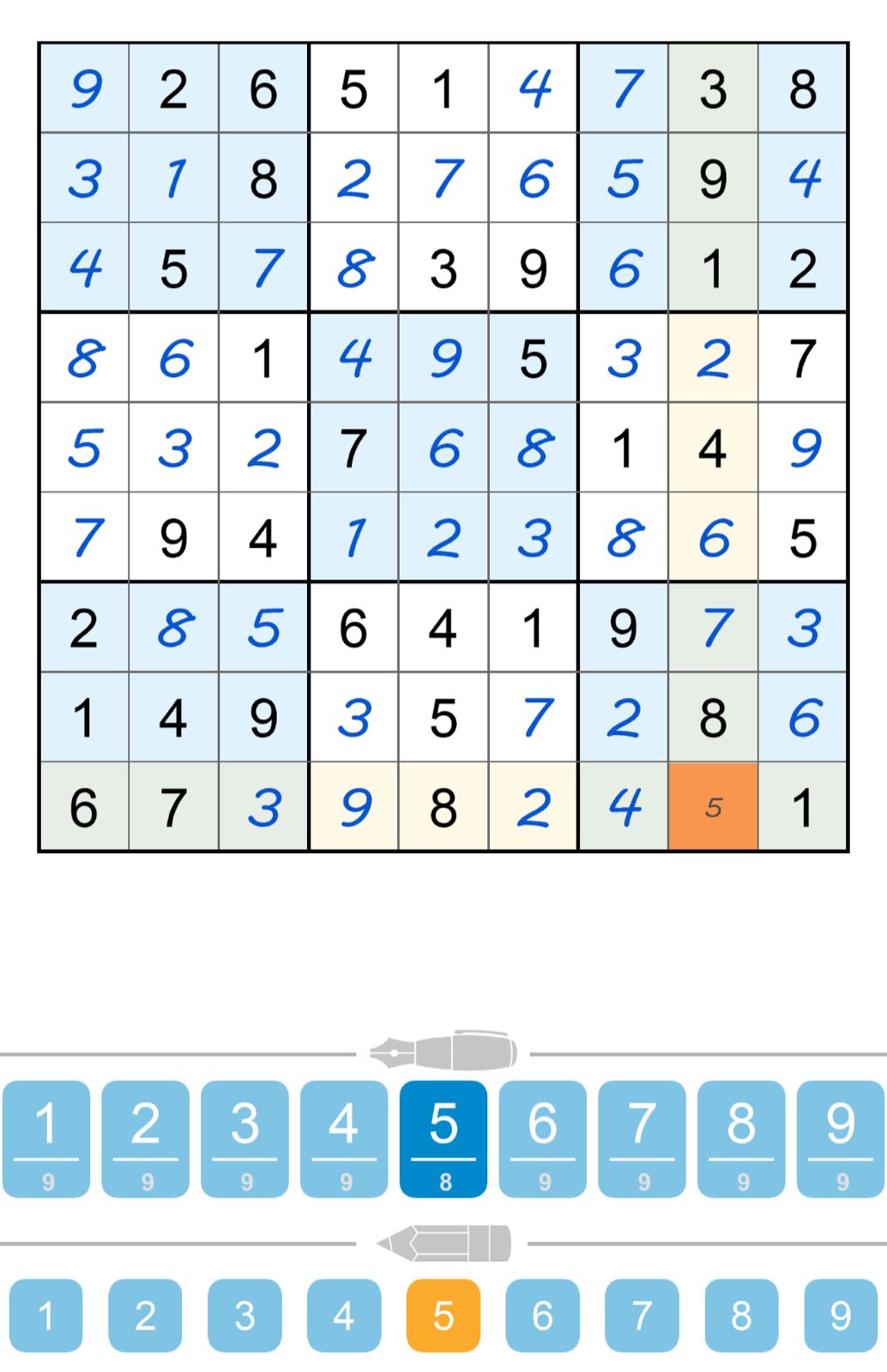 - Use logic to fill in the rest of the grid with the missing numbers.