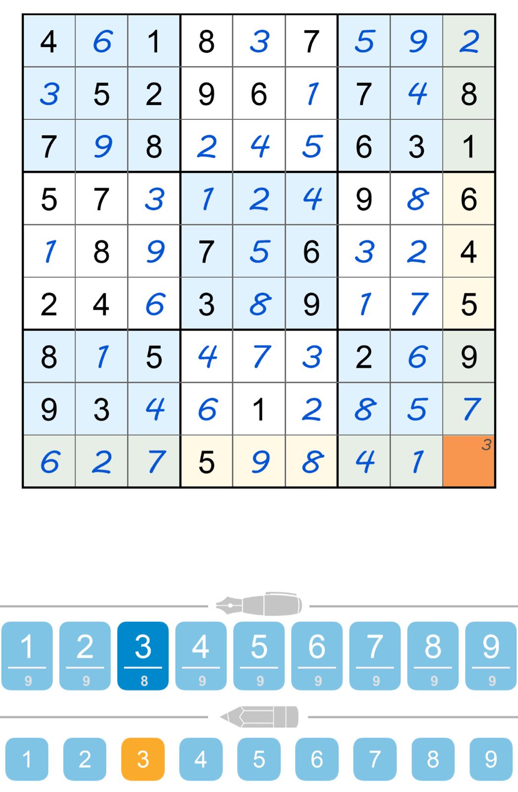 - Make sure that each row, column, and 3×3 subgrid contains all of the digits from 1 to 9 without repeating any.