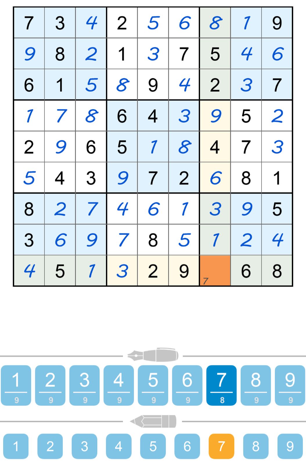 - Use logic to fill in the rest of the grid with the missing numbers.