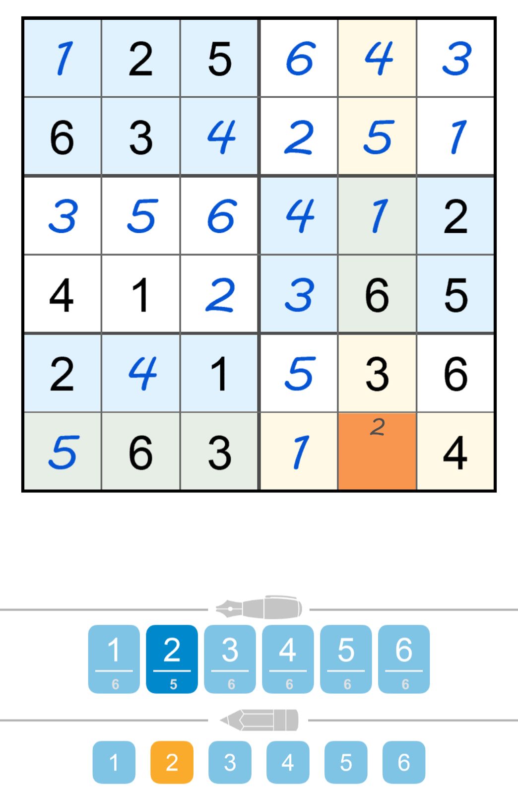 - Look at the given numbers in the grid. These are called “clues” and they cannot be changed.