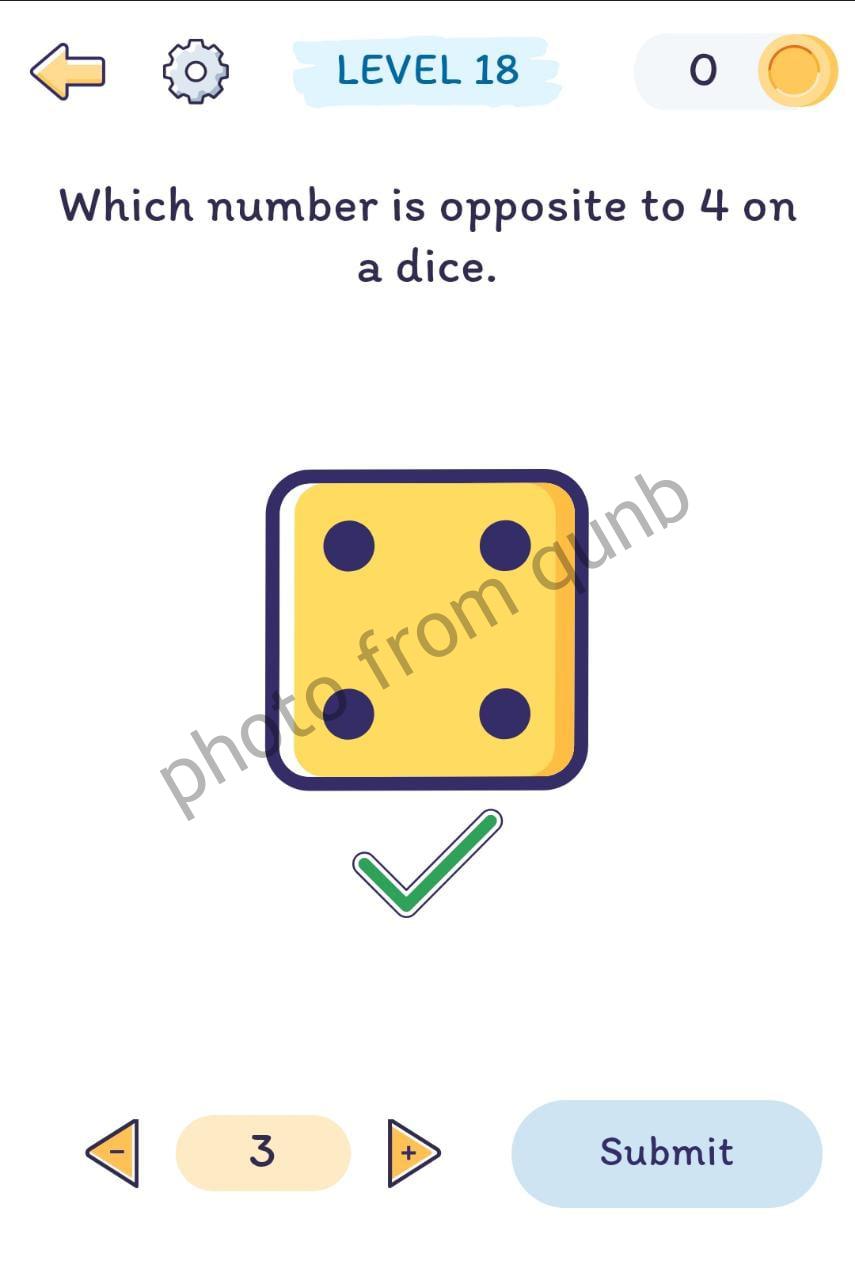 Smart Brain: Mind-Blowing Game is a brain teaser mobile game with different puzzle stories, has hundreds levels which sometimes can be hard to solve. For this situations you can always come to our website and find solutions for those levels. This page for Level 18 “Which number is opposite to 4 on a dice” Classics Pack of Smart Brain game. Below photo read short way how we solved this level and enjoy your game with our solutions!