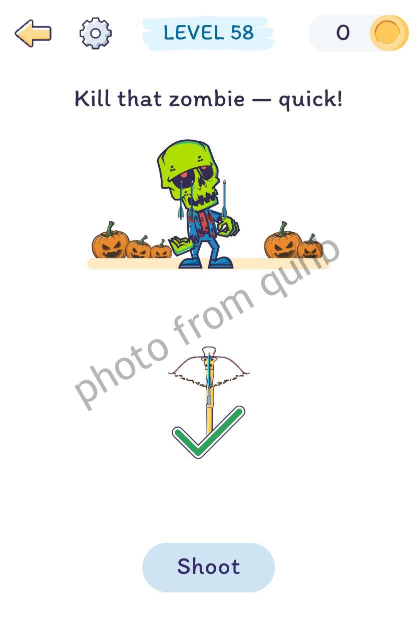 Smart Brain: Mind-Blowing Game is a brain teaser mobile game with different puzzle stories, has hundreds levels which sometimes can be hard to solve. For this situations you can always come to our website and find solutions for those levels. This page for Level 58 “Kill that zombie – quick” Classics Pack of Smart Brain game. Below photo read short way how we solved this level and enjoy your game with our solutions!