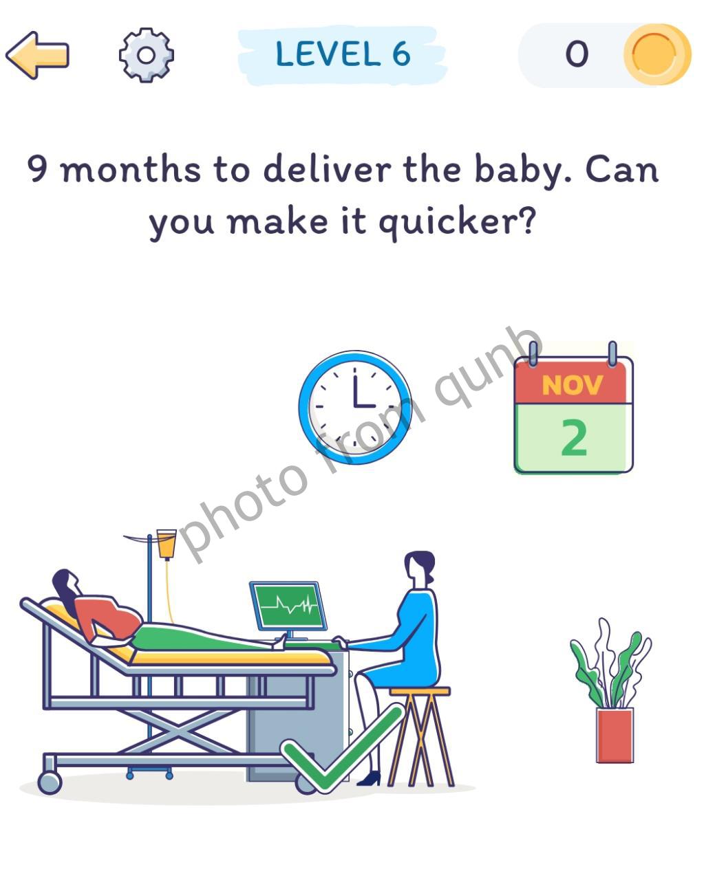 Smart Brain: Mind-Blowing Game is a brain teaser mobile game with different puzzle stories, has hundreds levels which sometimes can be hard to solve. For this situations you can always come to our website and find solutions for those levels. This page for Level 6 “9 months to deliver the baby. Can you make it quicker” Classics Pack of Smart Brain game. Choose level and enjoy your game with our solutions!
