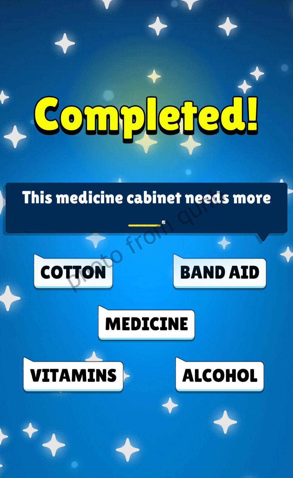 Popular Words Game is created by Unico Studio. Game including hundreds of unique questions, free Daily challenges and bonus rewards. You can play this game offline anytime and anywhere.For pass the level you have to guess 5 words that are missing in the sentence. For this, like hint is provided first letter of the every word. The levels of the game start with the easiest and continue with more difficult puzzles. If you need help for some levels – you can find it in our website. Here you can find photo with all answers for “This medicine cabinet needs more __” which is a question from Level 343 Popular Words Game. Below answers follow link to all answers of the game. Enjoy your game!