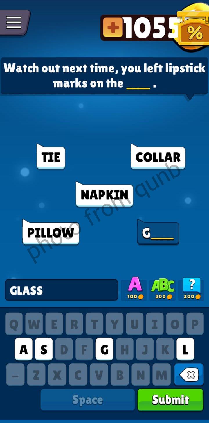 Popular Words Game is created by Unico Studio. Game including hundreds of unique questions, free Daily challenges and bonus rewards. You can play this game offline anytime and anywhere.For pass the level you have to guess 5 words that are missing in the sentence. For this, like hint is provided first letter of the every word. The levels of the game start with the easiest and continue with more difficult puzzles. If you need help for some levels – you can find it in our website. Here you can find photo with all answers for “Watch out next time, you left lipstick marks on the ____” which is a question from Level 185 Popular Words Game. Below answers follow link to all answers of the game. Enjoy your game!