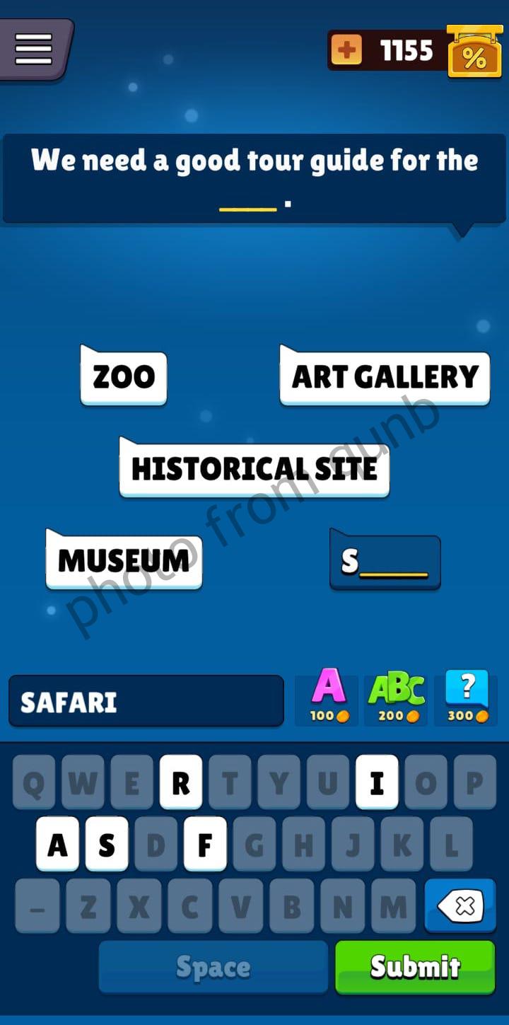 Popular Words Game is created by Unico Studio. Game including hundreds of unique questions, free Daily challenges and bonus rewards. You can play this game offline anytime and anywhere.For pass the level you have to guess 5 words that are missing in the sentence. For this, like hint is provided first letter of the every word. The levels of the game start with the easiest and continue with more difficult puzzles. If you need help for some levels – you can find it in our website. Here you can find photo with all answers for “We need a good tour guide for the ____” which is a question from Level 258 Popular Words Game. Below answers follow link to all answers of the game. Enjoy your game!