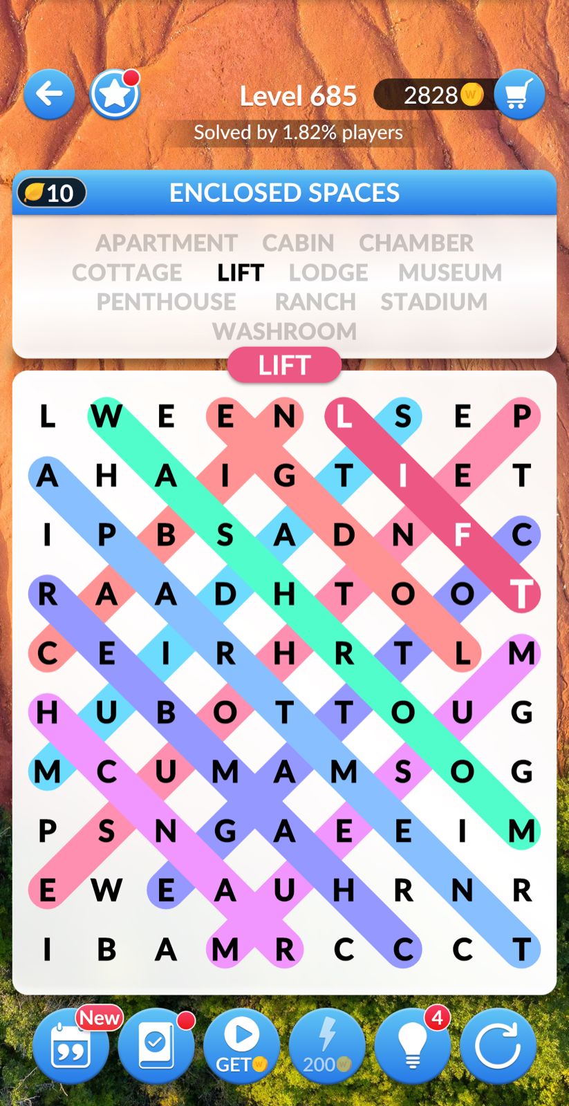 Word Search Explorer Game developed by PlaySimple Games. As a classic word search game Word Search Explorer consist of different themed levels and daily challenge where you should find missed words to complete the quote of famous people. When you play this game, you will see that some levels such as Level 685 “Enclosed Spaces” Word Search Explorer Game are quite difficult. You can see the way to solve it in the photo published below. For more level answers please follow the link below photo. Enjoy your game!