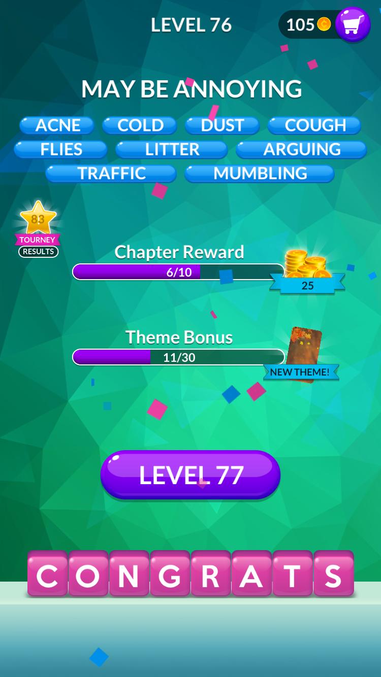 Word Stacks is most popular brain teasers word game in mobile games. Thousands people addicted to this word game. Word Stacks developed by PeopleFun company. They have also other style popular word games as Wordscapes. When you stuck on Word Stacks Level 76, you can look answers on our screenshot below. If you see any problem, please let us know. Enjoy!