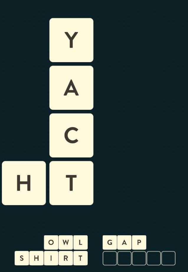 ANSWERS: OWL, GAP, SHIRT, YACHT