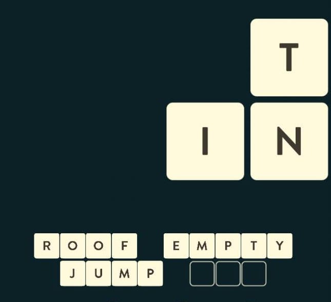 ANSWERS: ROOF, EMPTY, JUMP, TIN