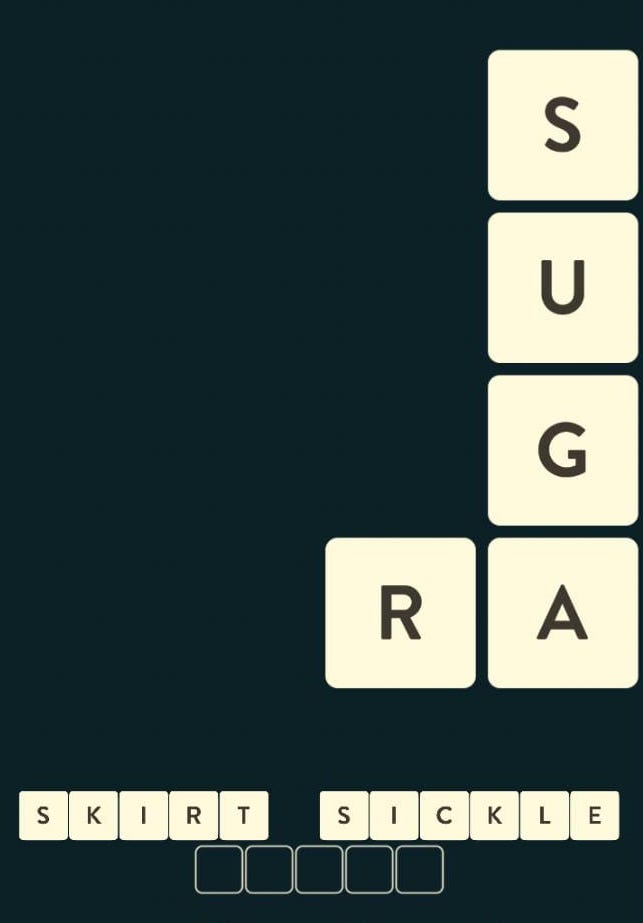 ANSWERS: SKIRT, SICKLE, SUGAR