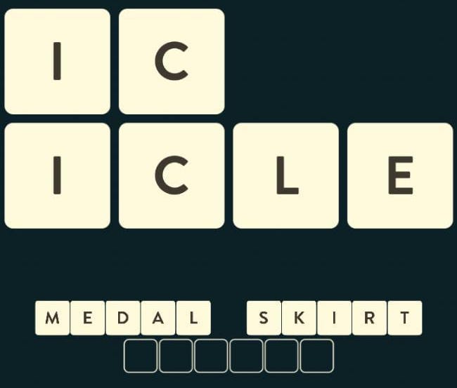 ANSWERS: MEDAL, SKIRT, ICICLE