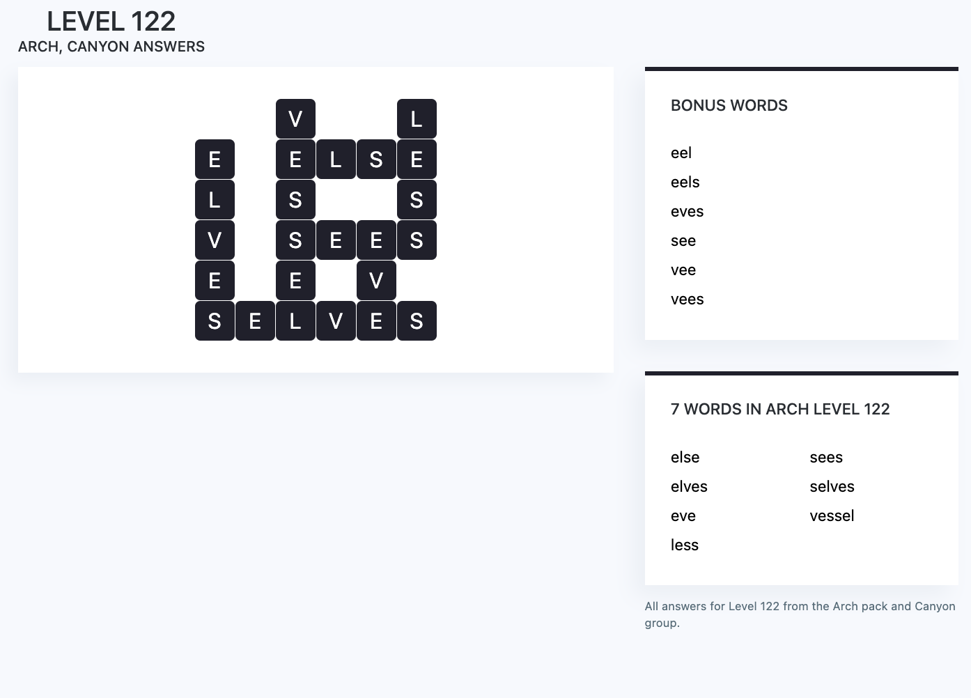 We publish the answers to all levels for Wordscapes, one of the most popular word games. You can find answers and bonus words for Wordscapes level 122 on this page. Please note that there are more than 60 thousand levels in the Wordscapes word game and you can find all the answers on our site.