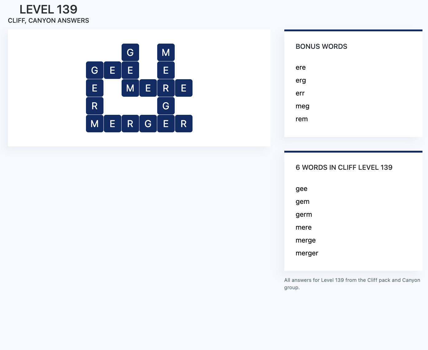We publish the answers to all levels for Wordscapes, one of the most popular word games. You can find answers and bonus words for Wordscapes level 139 on this page. Please note that there are more than 60 thousand levels in the Wordscapes word game and you can find all the answers on our site.