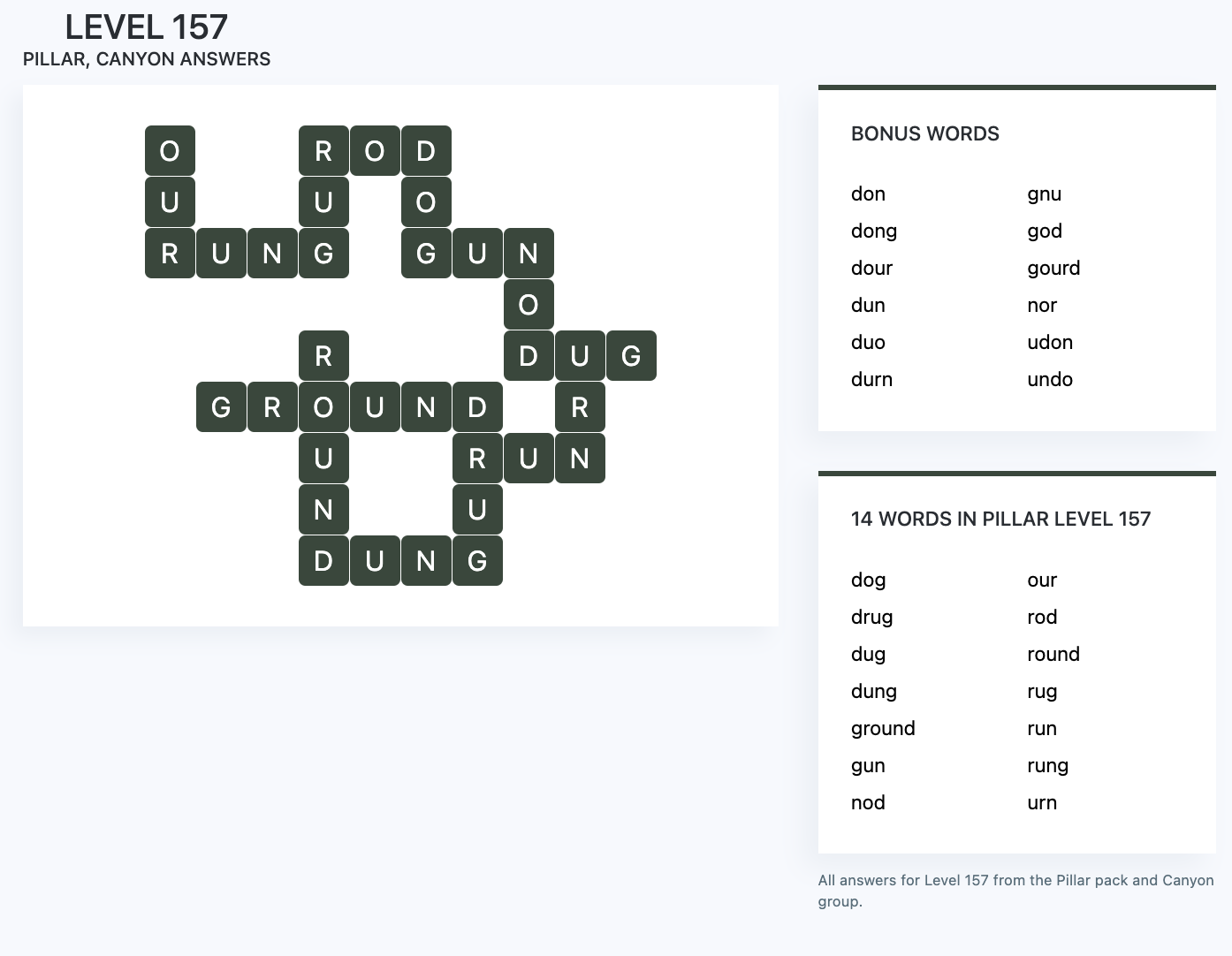 We provide solutions for all tiers in the highly popular word game, Wordscapes. On this page, you’ll discover answers and bonus words specifically for Wordscapes level 157. It’s worth noting that Wordscapes boasts over 60,000 levels, and you can access answers for all of them right here on our website.