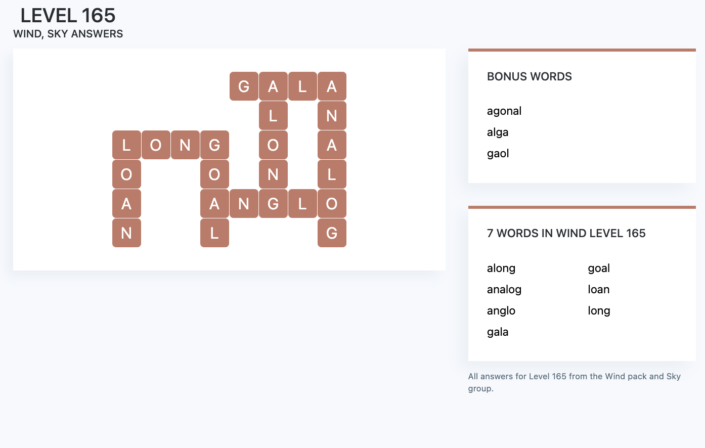We provide solutions for all tiers in the highly popular word game, Wordscapes. On this page, you’ll discover answers and bonus words specifically for Wordscapes level 165. It’s worth noting that Wordscapes boasts over 60,000 levels, and you can access answers for all of them right here on our website.