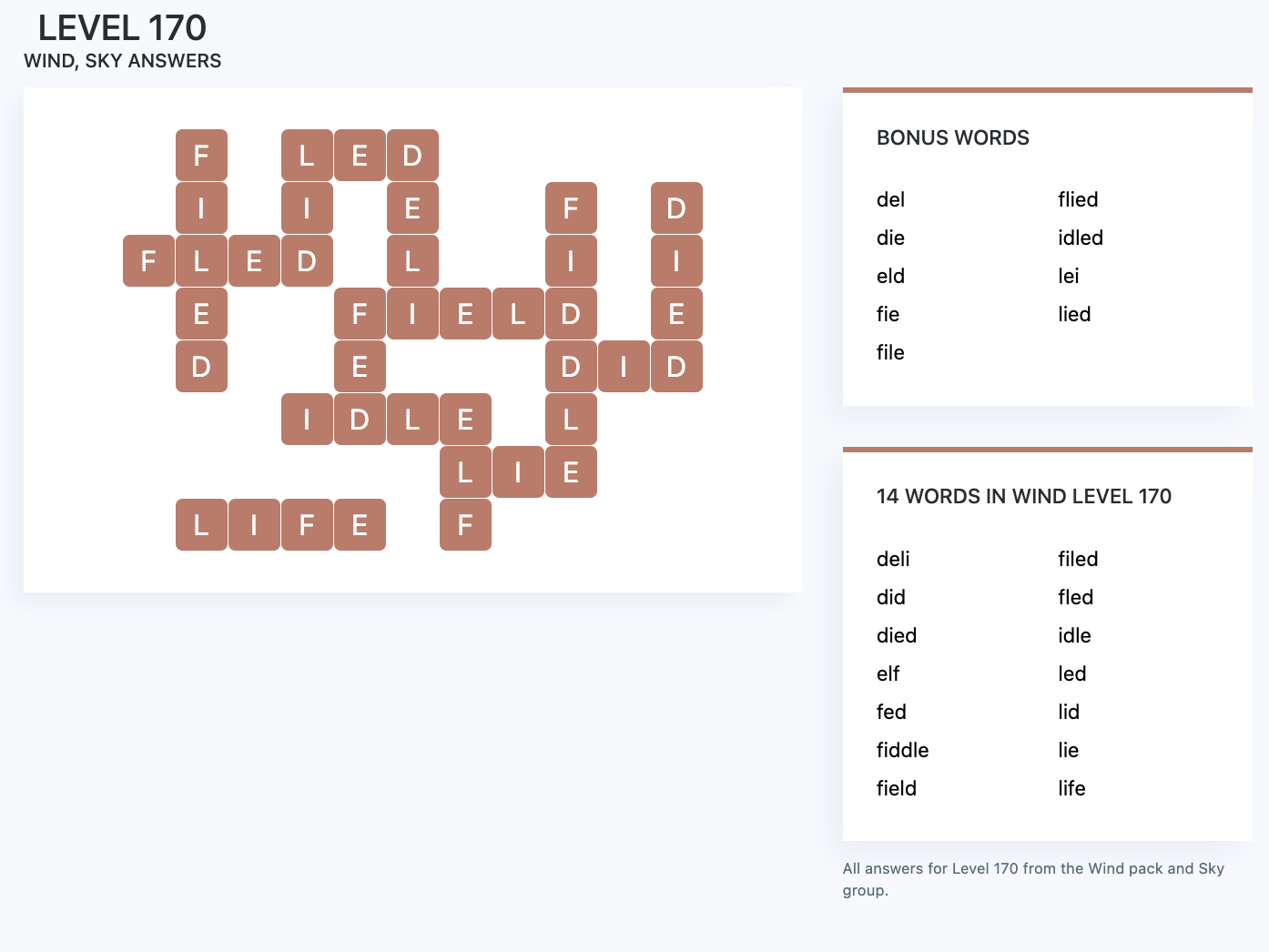 We provide solutions for all tiers in the highly popular word game, Wordscapes. On this page, you’ll discover answers and bonus words specifically for Wordscapes level 170. It’s worth noting that Wordscapes boasts over 60,000 levels, and you can access answers for all of them right here on our website.