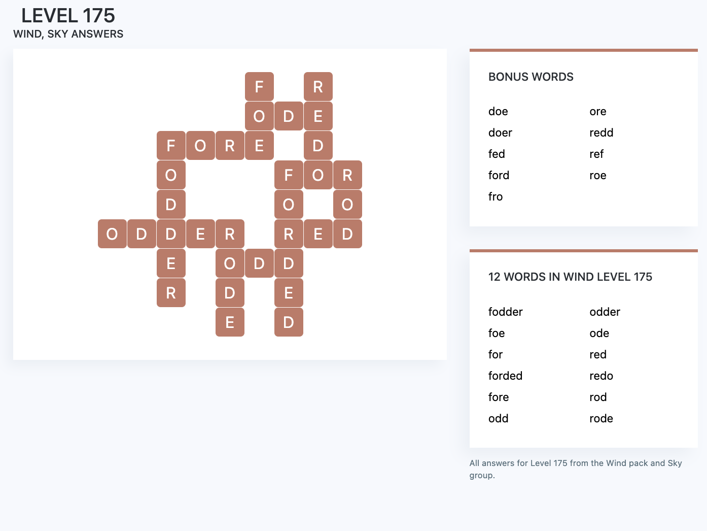 We provide solutions for all tiers in the highly popular word game, Wordscapes. On this page, you’ll discover answers and bonus words specifically for Wordscapes level 175. It’s worth noting that Wordscapes boasts over 60,000 levels, and you can access answers for all of them right here on our website.