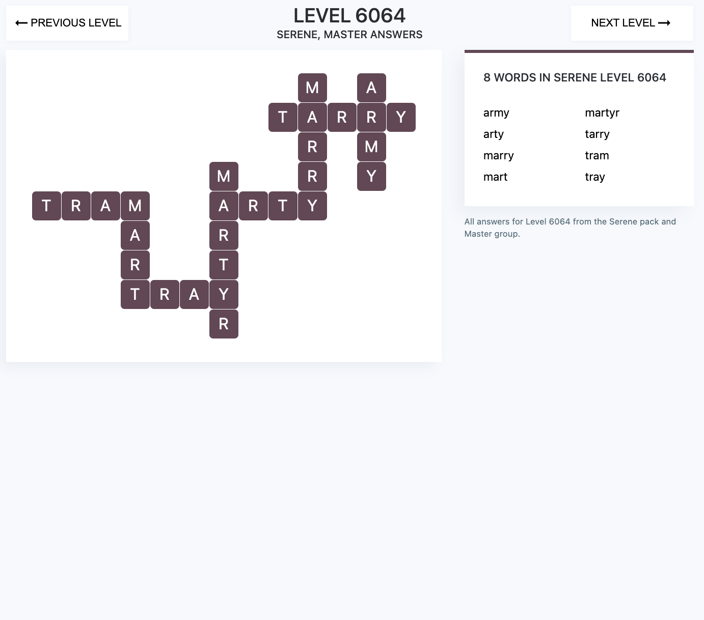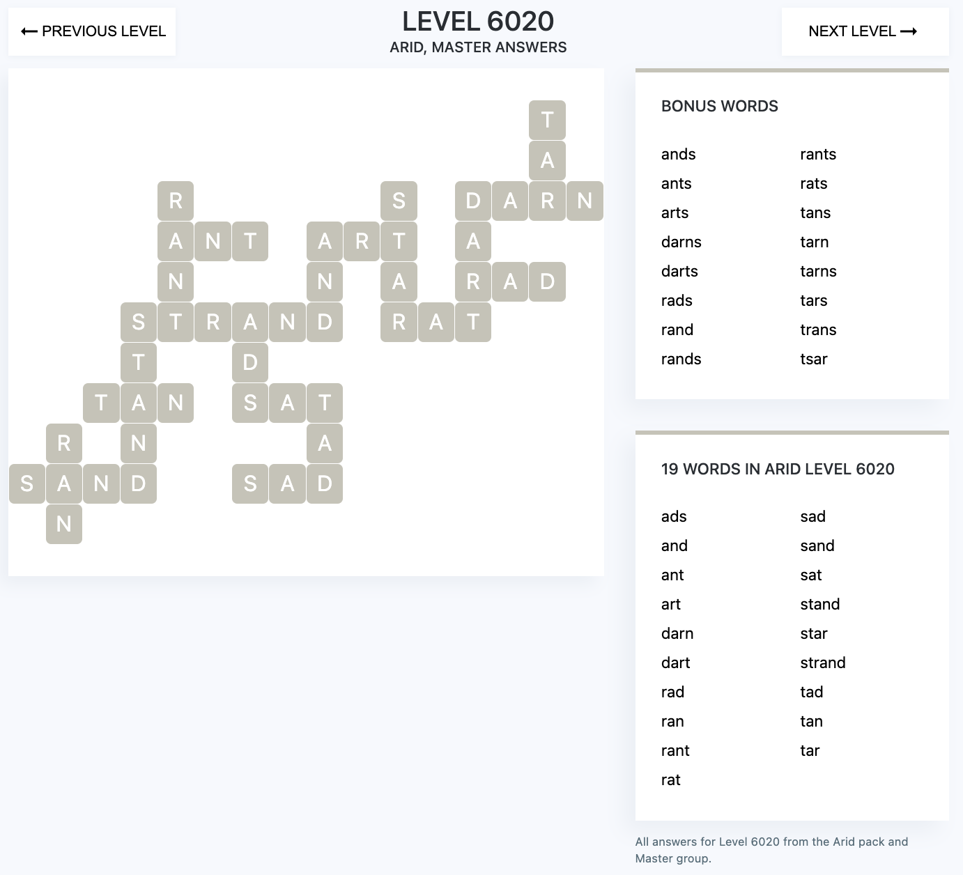 Wordscapes is the most popular word puzzle game in the USA, UK, France, Germany, Australia and many other countries. It is accessible on almost all platforms, especially iOS and Android. The game’s atmosphere, graphics and gameplay have enabled it to gain millions of loyal users. On this page we publish the answers to puzzles from level 6001 to level 6100 for Wordscapes.