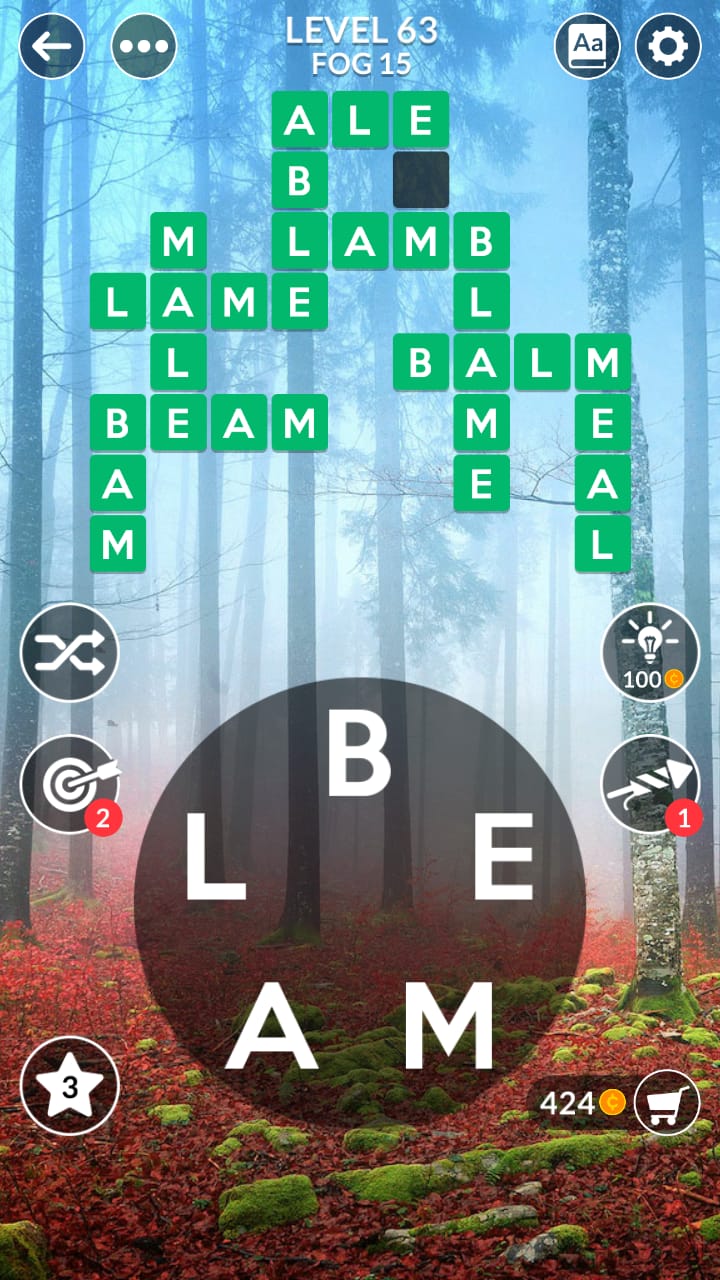 Wordscapes is best minimal word game developed by PeopleFun. Our puzzle solver team really enjoying with Wordscapes. If you are playing this game and stuck in [Level 63 (Fog 15 Forest)], you can find answers below.