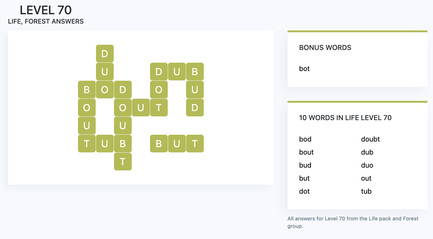 We publish the answers to all levels for Wordscapes, one of the most popular word games. You can find answers and bonus words for Wordscapes level 70 on this page. Please note that there are more than 60 thousand levels in the Wordscapes word game and you can find all the answers on our site.